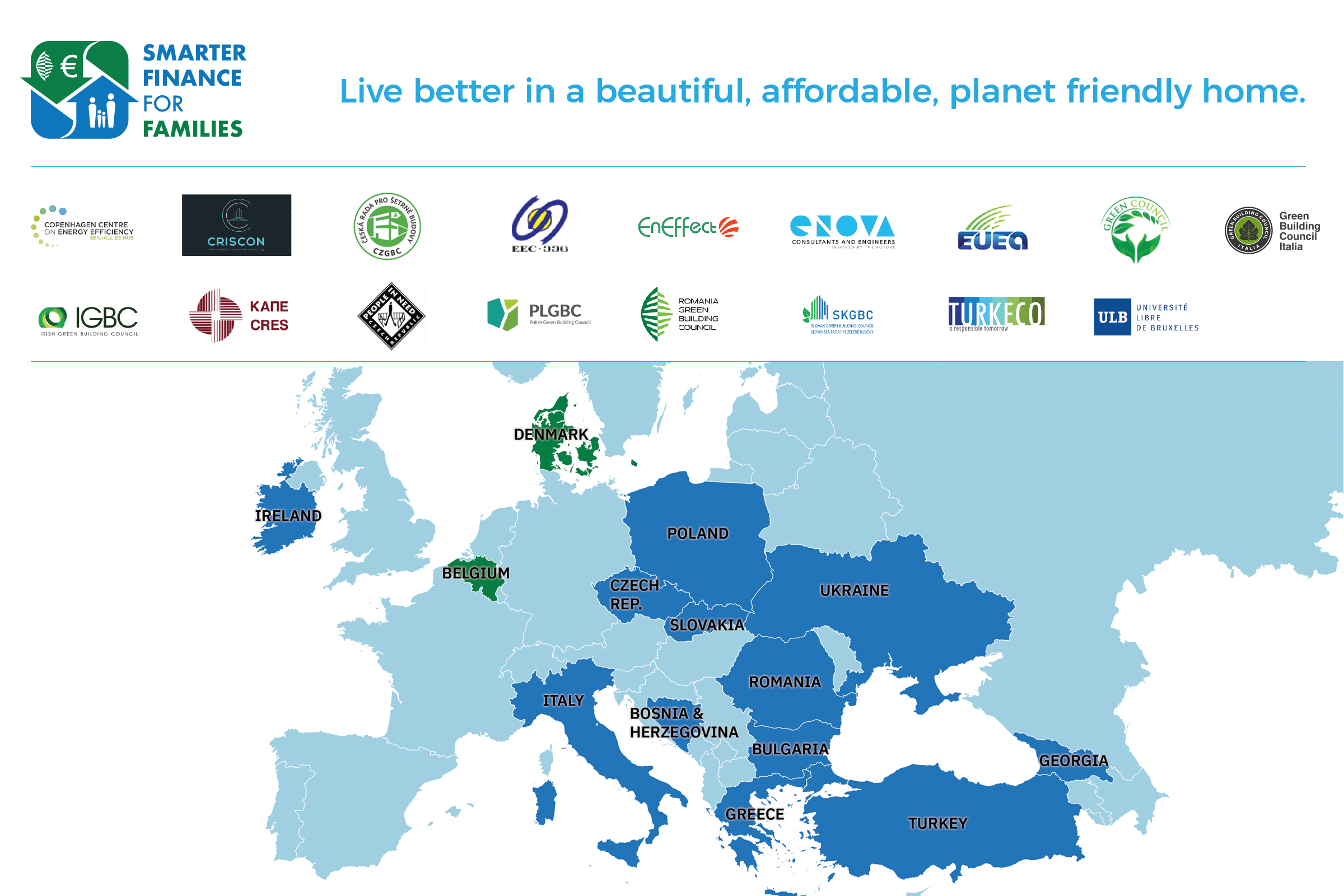 SMARTER Finance for Families is a Horizon 2020 project to implement ambitious yet practical Green Homes & Green Mortgage programs in 12 European countries that includes the collaboration and participation of 17 expert green building, green energy, research and other organizations.